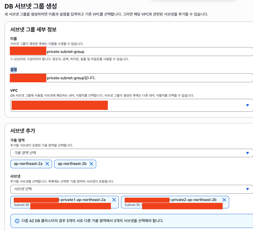 4-2단계. DB Subnet Group 생성