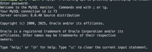 mysql -h <RDS_ENDPOINT> -P 3306 -u <USERNAME> -p